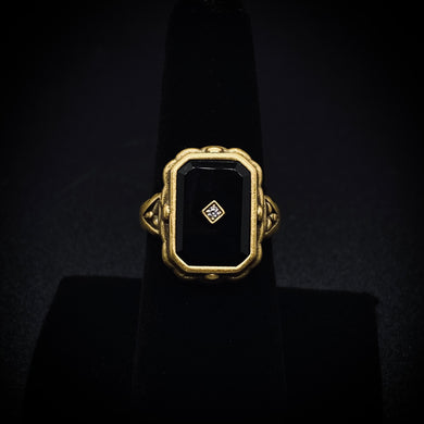 Antiqued 14K Gold Onyx Mourning Ring